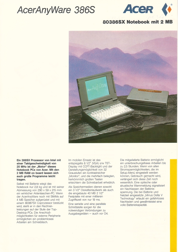 Screenshot #1: System Speed Test 4.78 on the Acer AnyWare 386s.