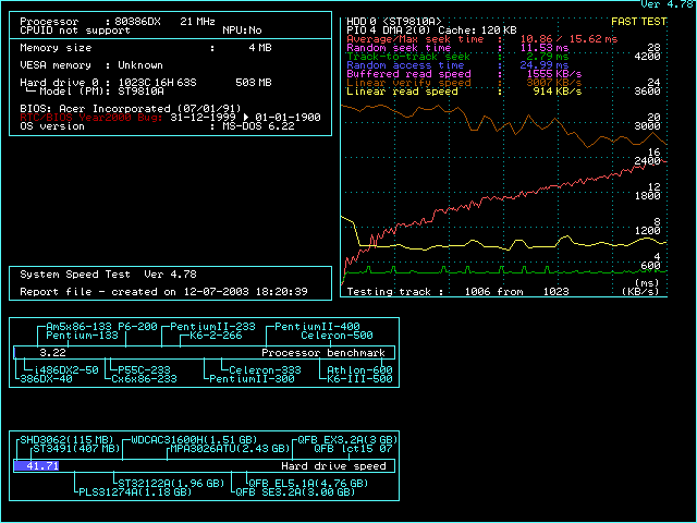 System Speed Test Ver 4.78 Report file - created on 12-07-2003 18:20:35